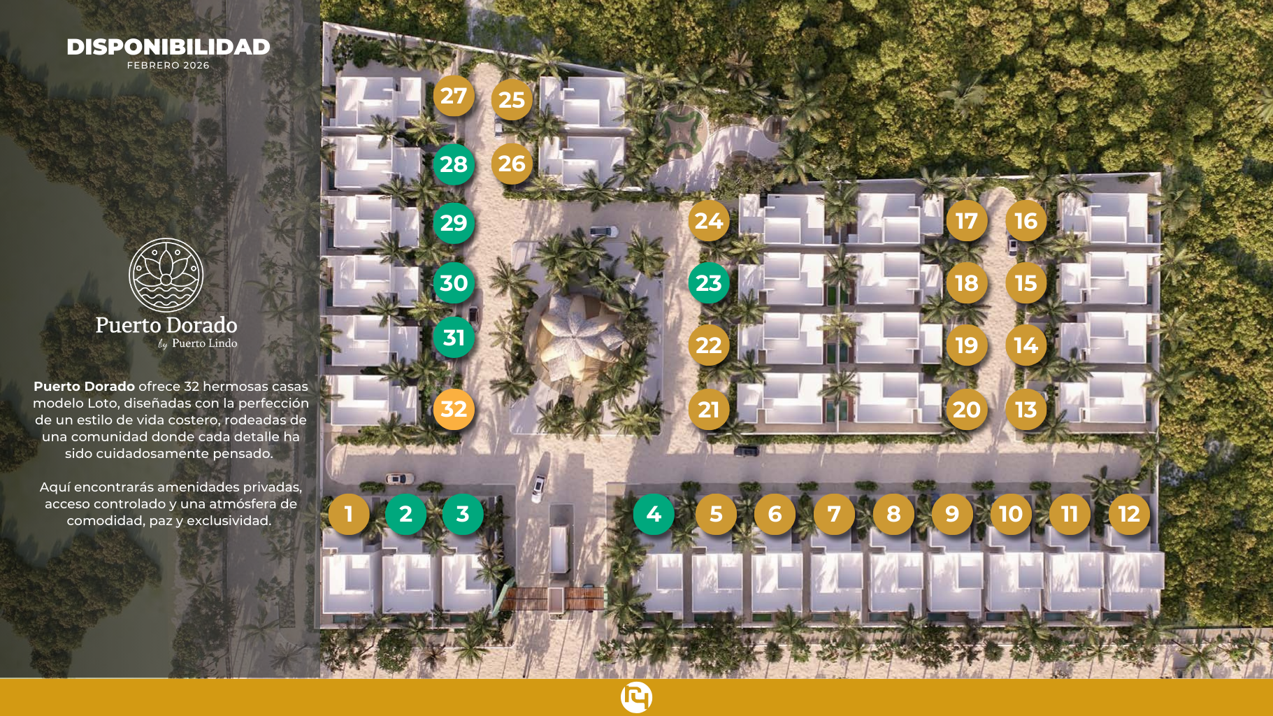 Privada residencial de 32 casas de un piso, 3 recámaras y piscina en Chelem, Yucatán. Dentro del macro proyecto Puerto Lindo. A 3 calles de la playa y con acceso al club de playa Bonita.